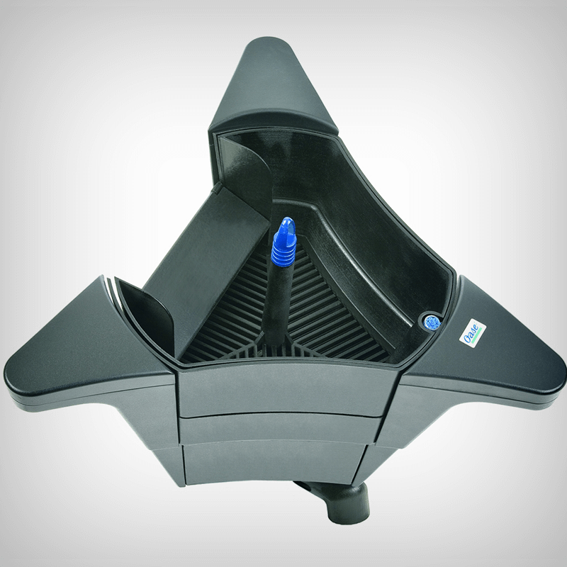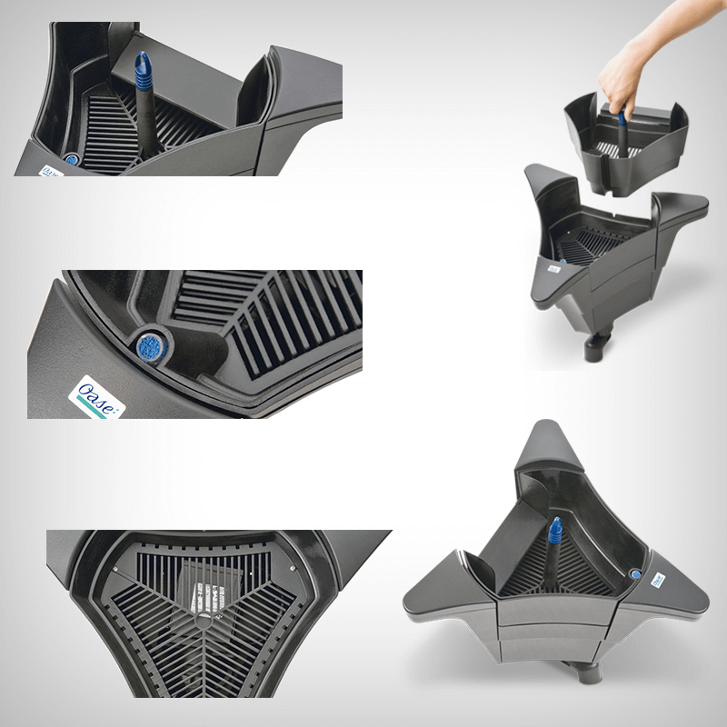 Skimmerul se adapteaza usor la orice nivel de apa (incepand cu 40 cm adancime) si este potrivit pentru iazuri a caror suprafata este de maxim 50 mp. Se curata foarte usor prin scoaterea cosului de colectare.