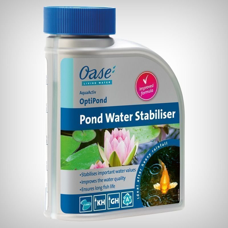 Stabilizatorul AquaActiv OptiPond stabilizeaza duritatea carbonica a apei, restabilind un mediu sanatos pentru plantele si pestii din iaz.