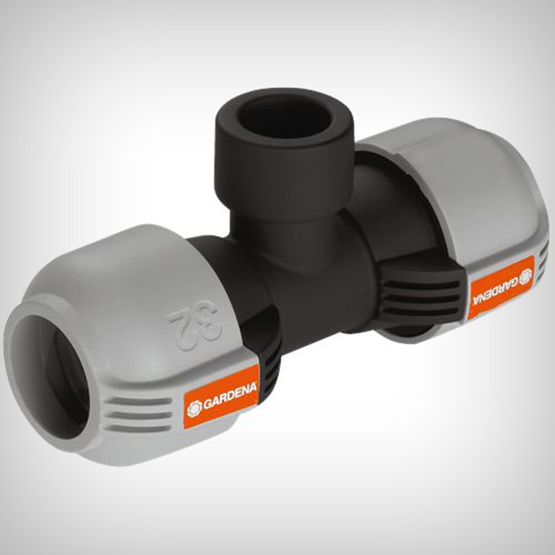 Ca element al sistemului de aspersoare GARDENA, T-ul 25 mm x filet interior 3/4" GARDENA asigura instalarea valvei de golire (nr. articol 2760-20) pe parcursul conductei. Prin intermediul tehnologiei simple de conectare "Quick & Easy", brevetata, asamblarea sau dezasamblarea conductei se realizeaza fara unelte, prin simpla rotire cu 140 grade a fitingului insurubat. Pentru functionare sigura si fara scurgere de apa, filetul T-ului se autoetanseaza.