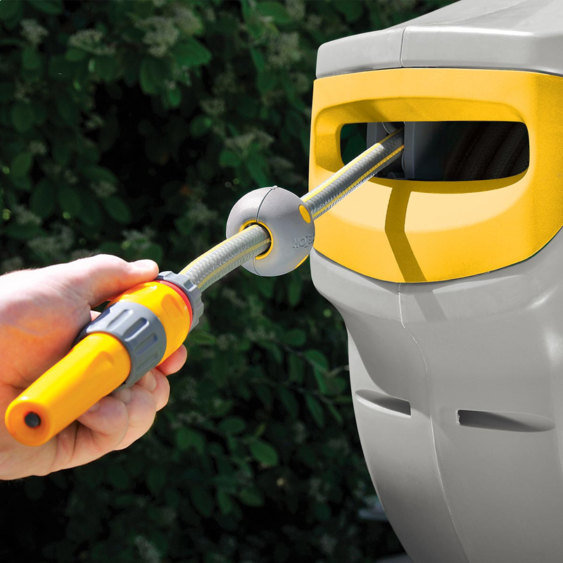 Derulator de furtun cu prindere in perete si rulare automata lenta.