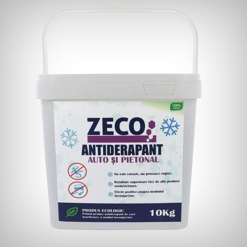 Antiderapantul Zeco este un produs care contine exclusiv zeolit natural. Testat cu rezultate foarte bune inclusiv pe soselele din nordul Europei, acest produs poate fi aplicat atat pe drumuri cu circulatie intensa, cat si in propria gospodarie, pe scari, pe alei etc.