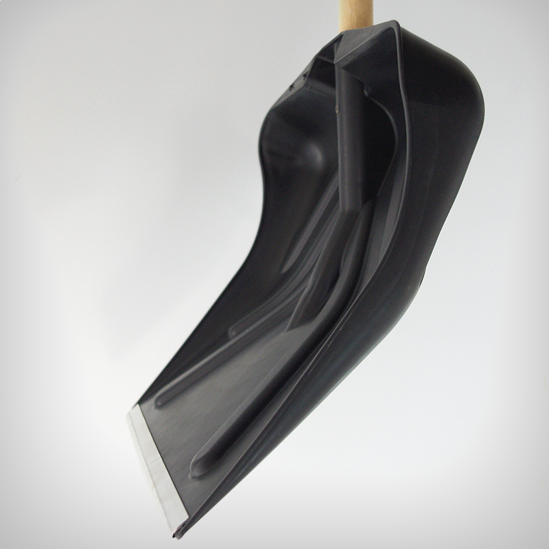 Pentru o manuire usoara, lopata de zapada are marginea intarita cu aluminiu.